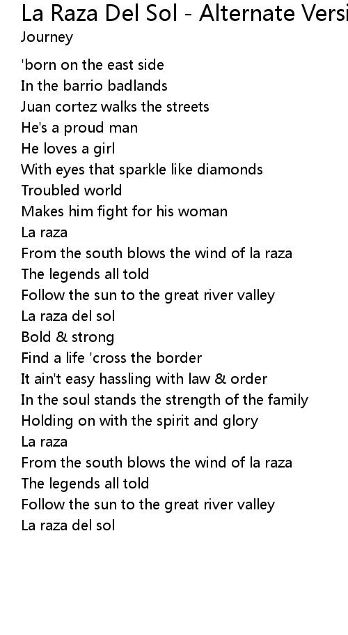 La Raza Del Sol - Alternate Version 歌词