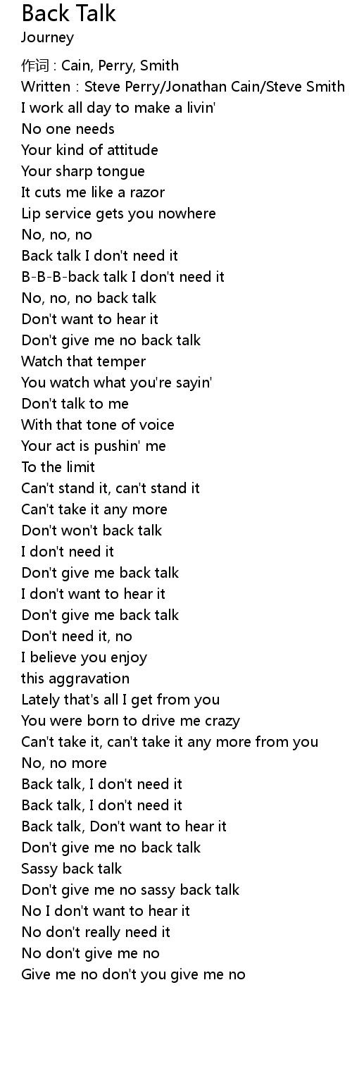 | Back talk, Don' t want to hear it | |