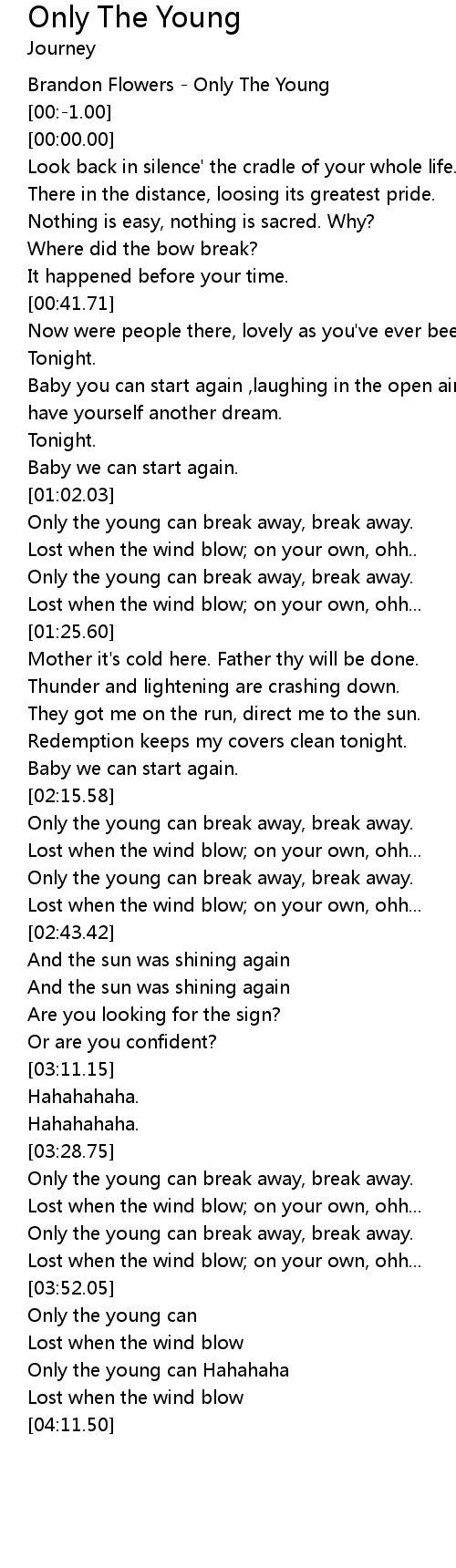 Only the young can break away, break away. |