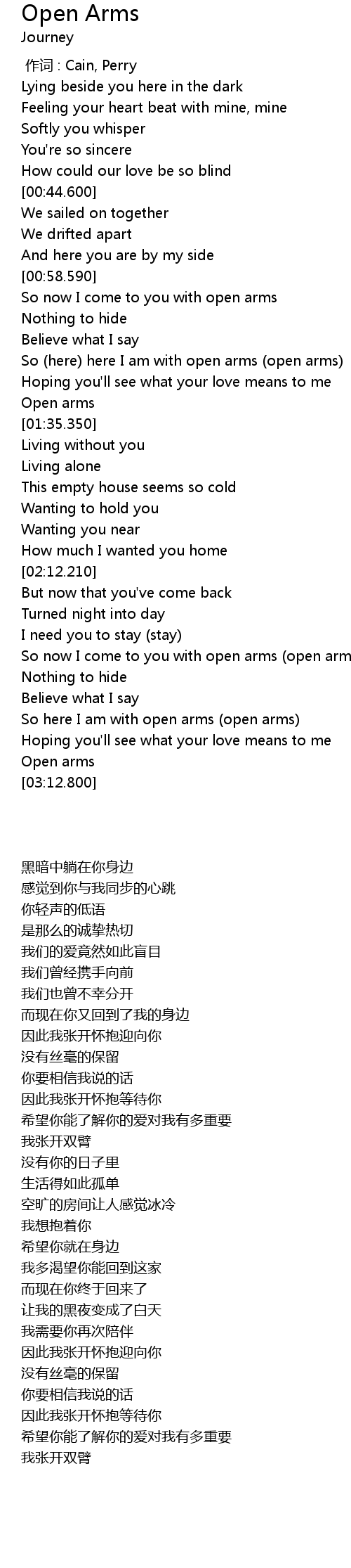 | [02:29.630] | So now I come to you with open arms (open arms) |