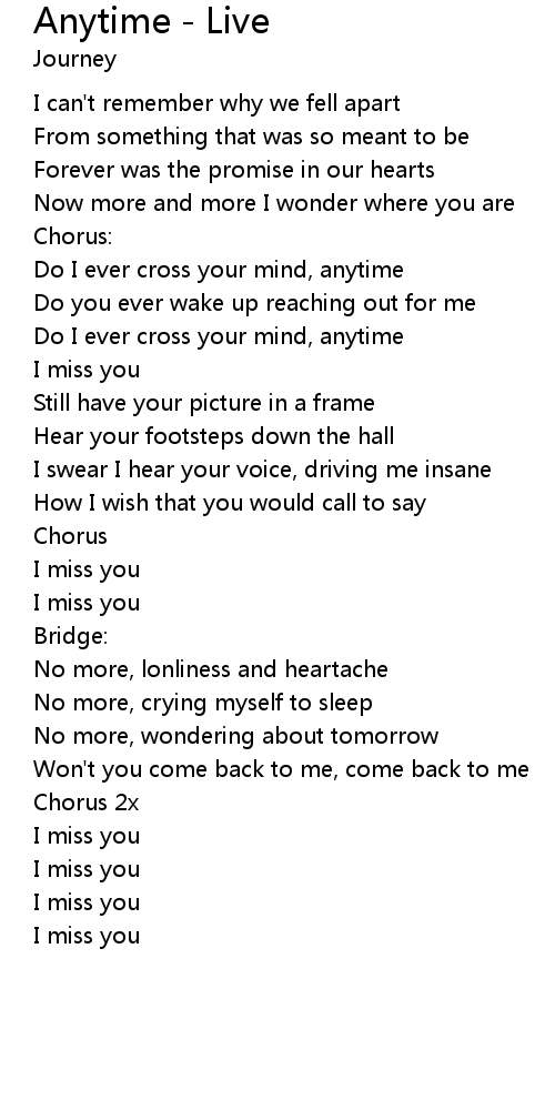 | Do I ever cross your mind, anytime | |