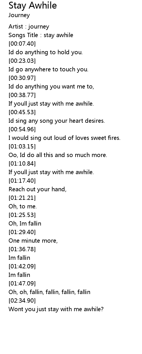 | [00:03.09] | Songs Title: stay awhile |