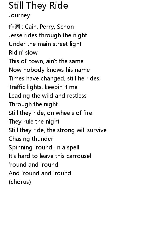 | Still they ride, on wheels of fire | |