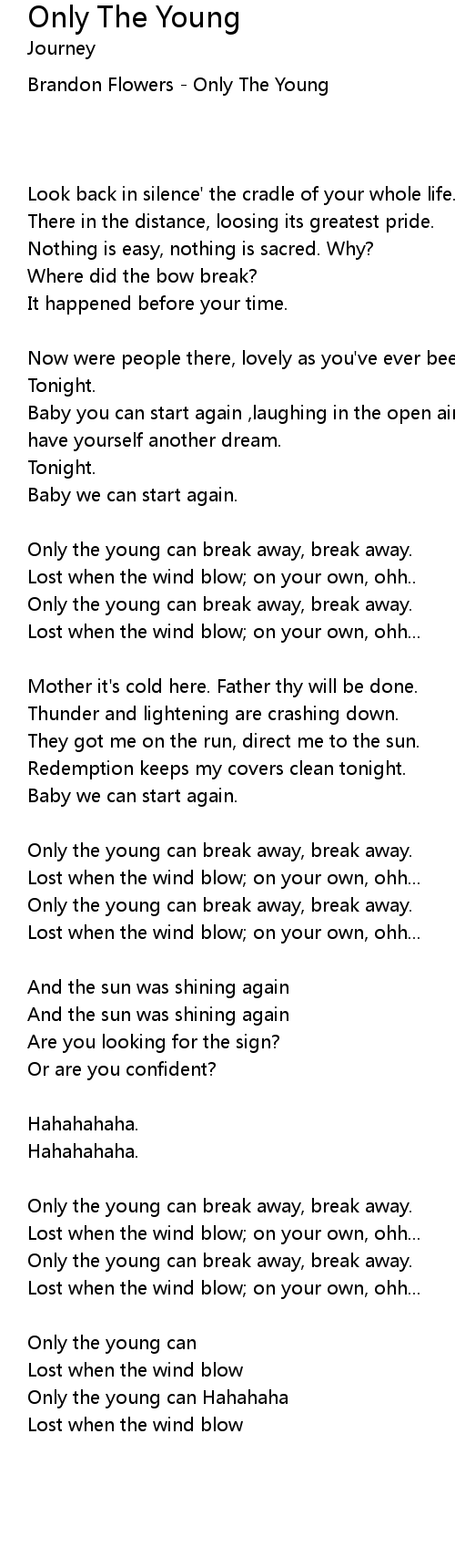 Only the young can break away, break away. |