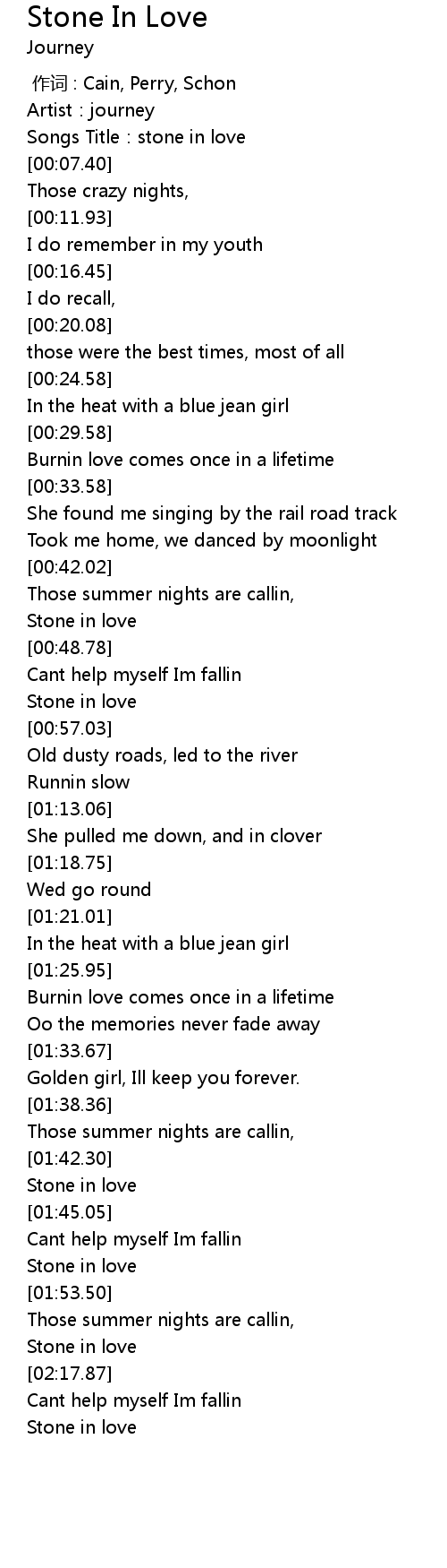 | [00:00.00] | 作词 : Cain, Perry, Schon |