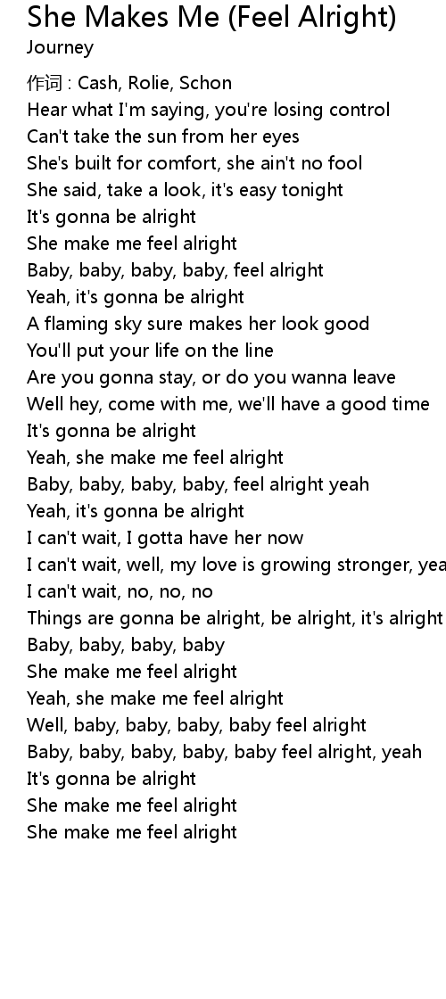 | Baby, baby, baby, baby, baby feel alright, yeah | |