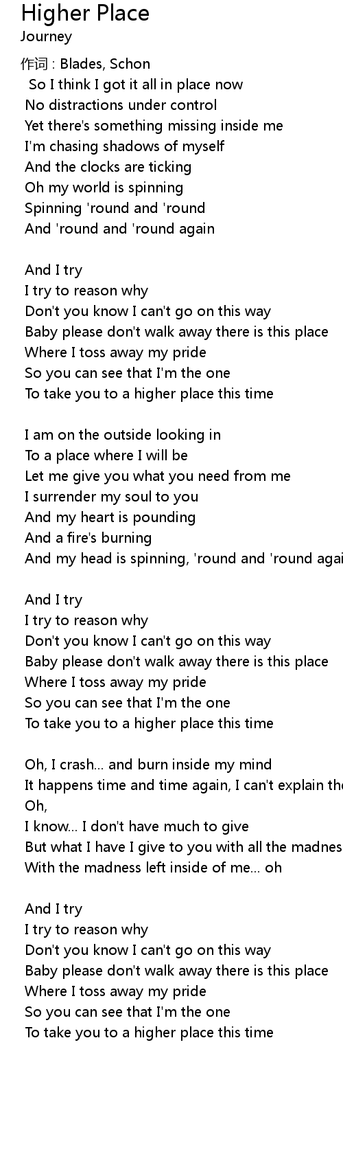 | To take you to a higher place this time |