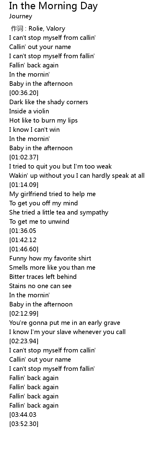 | [03:49.74][01:36.05] | In the mornin' |