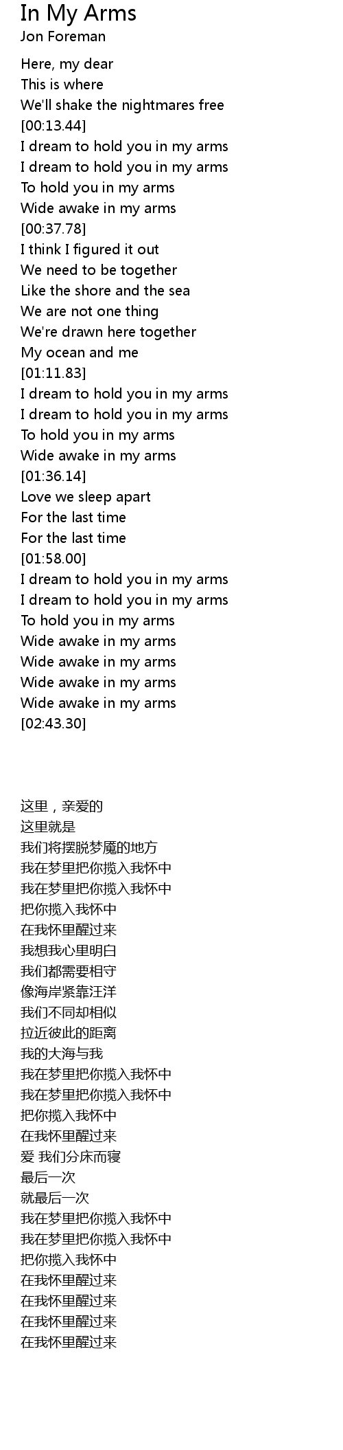 Wide awake in my arms |