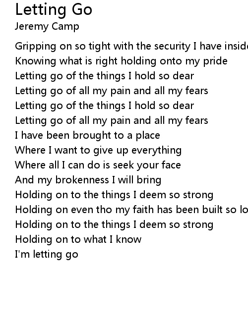 Letting go of all my pain and all my fears |