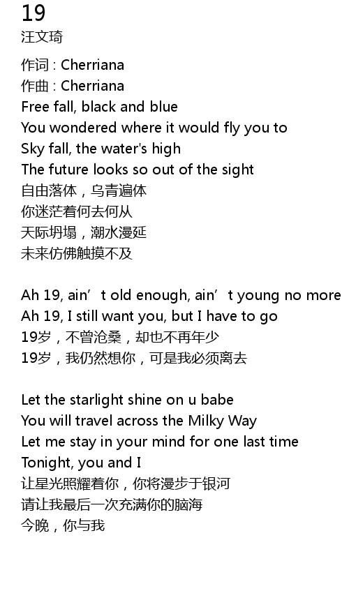 | 19 suì, wǒ réng rán xiǎng nǐ, kě shì wǒ bì xū lí qù | |