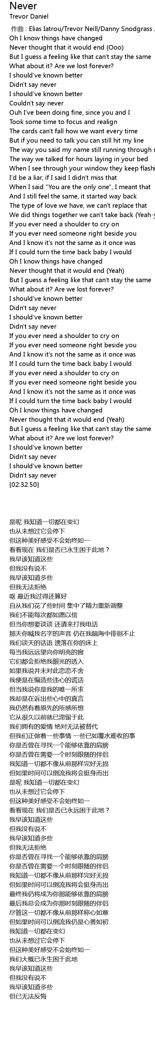 | [02:30.00] | Didn't say never |