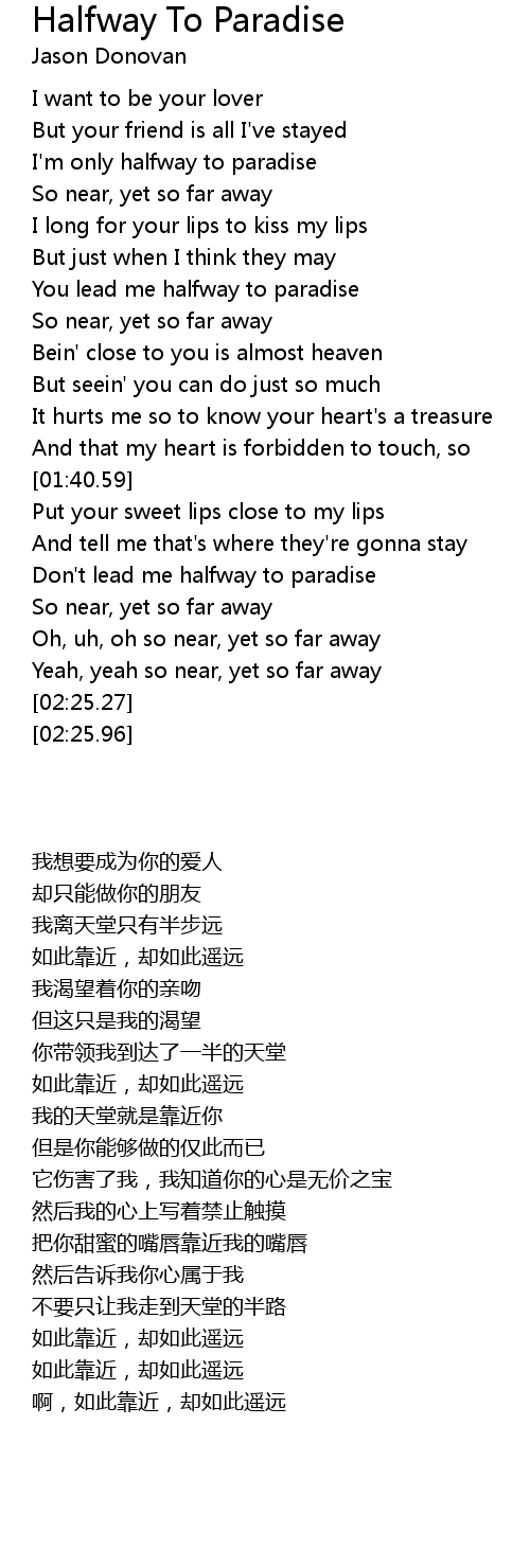 I'm only halfway to paradise |