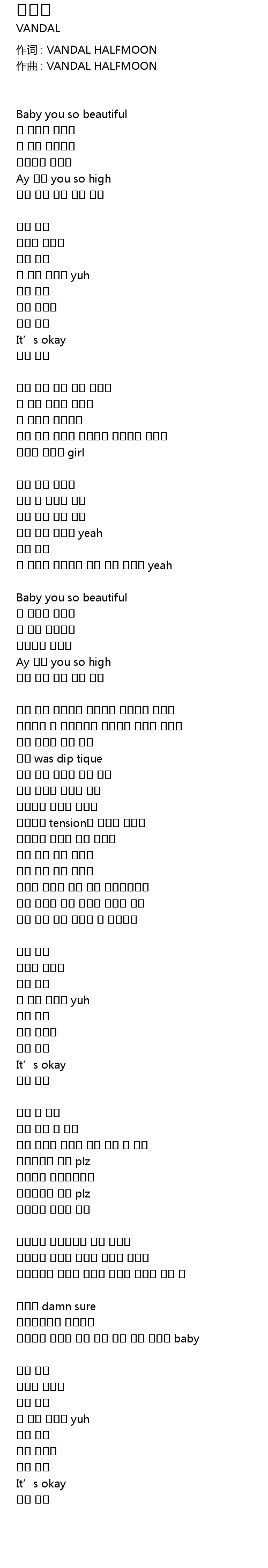 作词 : VANDAL HALFMOON |