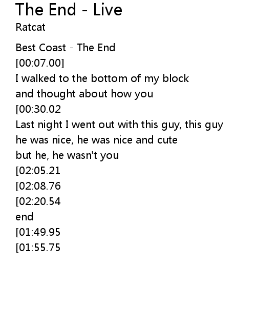 | [02:27.70][02:20.54][01:29.38][01:21.77] | the end, til the end, the end, til the end |