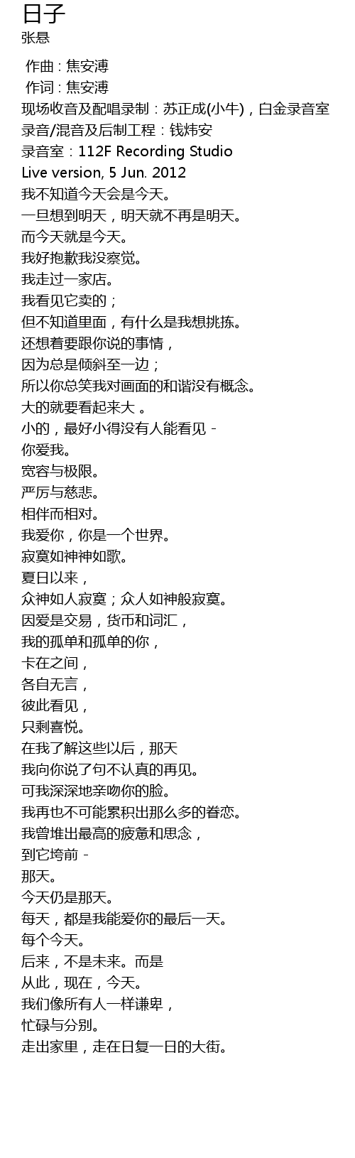 | [00:03.140] | 现场收音及配唱录制:苏正成(小牛),白金录音室 |