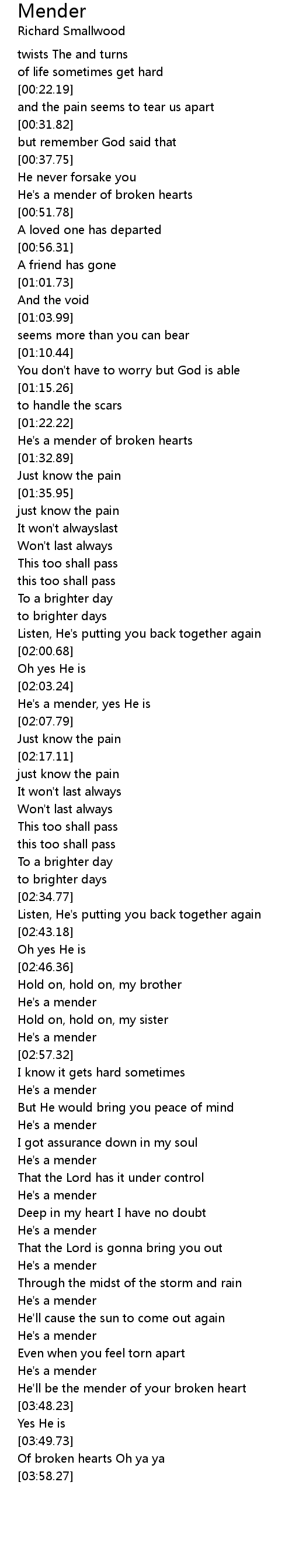 [02:04.42] He's a mender, yes He is