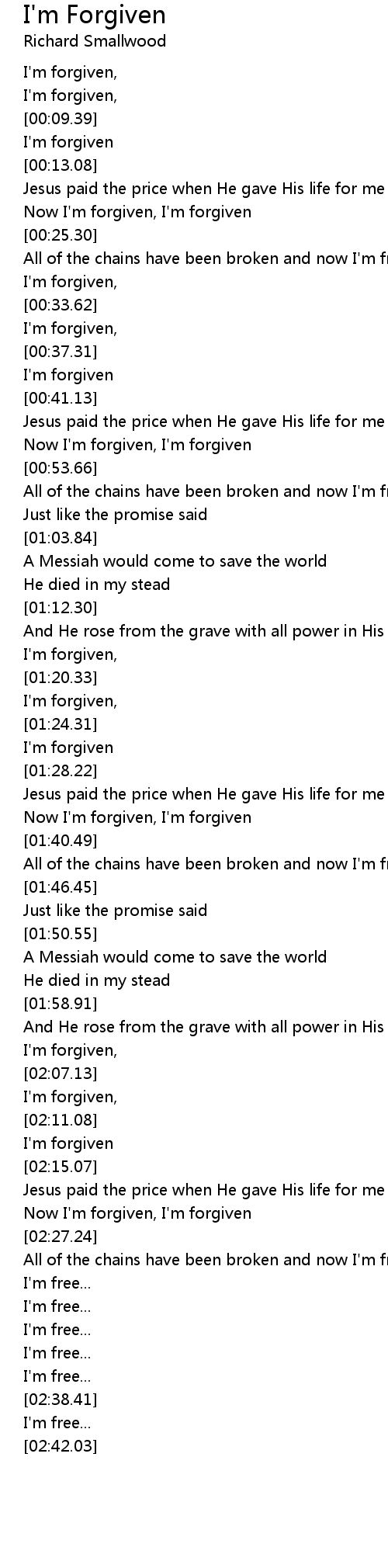 [01:34.65] Now I'm forgiven, I'm forgiven