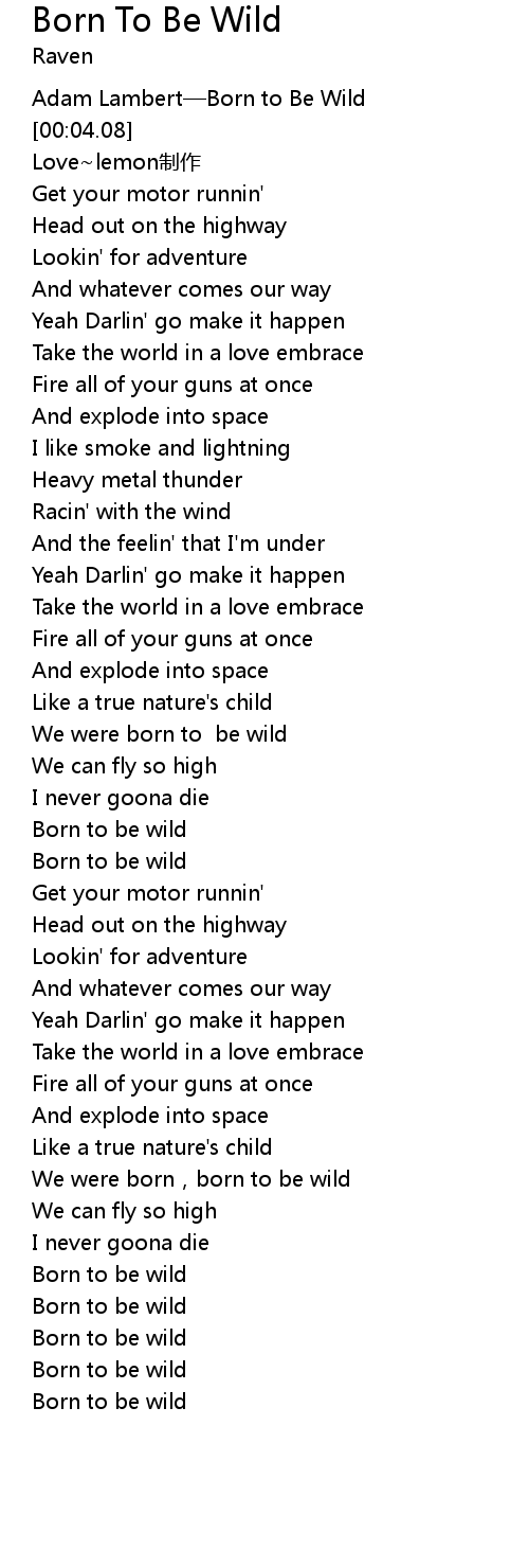 | [02:11.83] | Born to be wild |