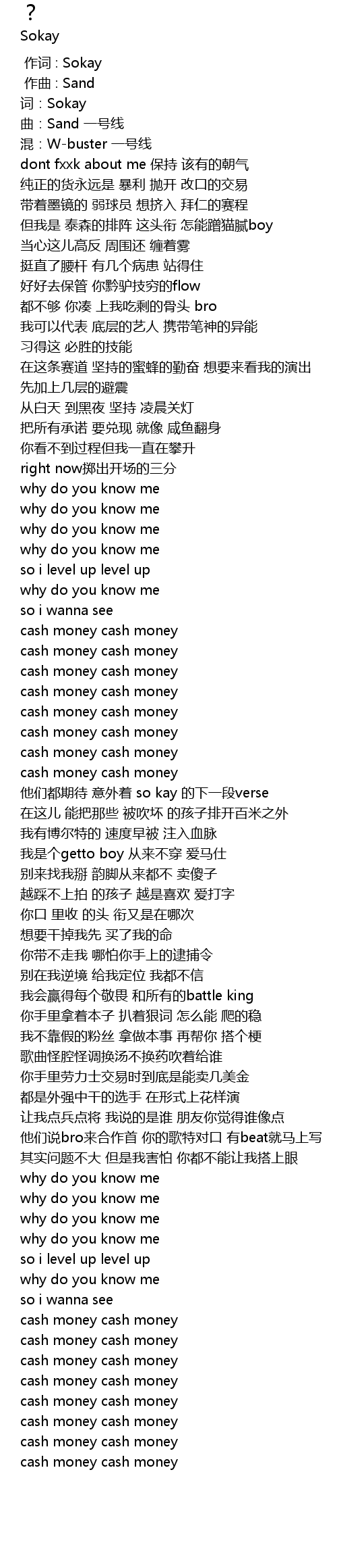 | [01:45.364] | 他们都期待 意外着 so kay 的下一段verse |