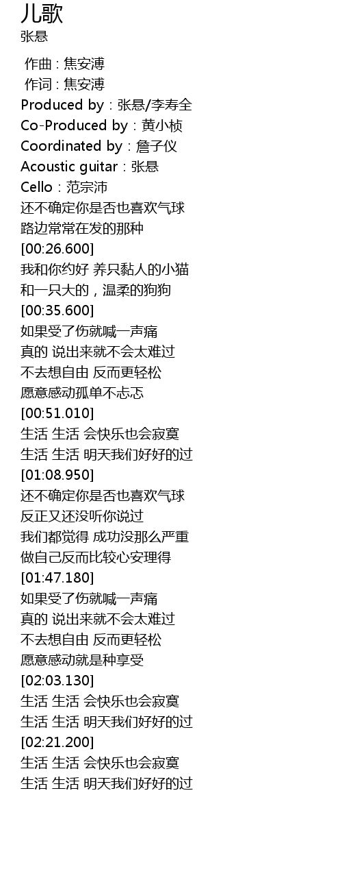 | [00:02.080] | Produced by:张悬/李寿全 |