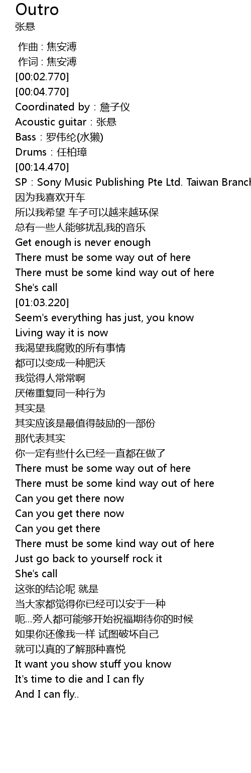 | [00:08.770] | Acoustic guitar: zhang xuan |
