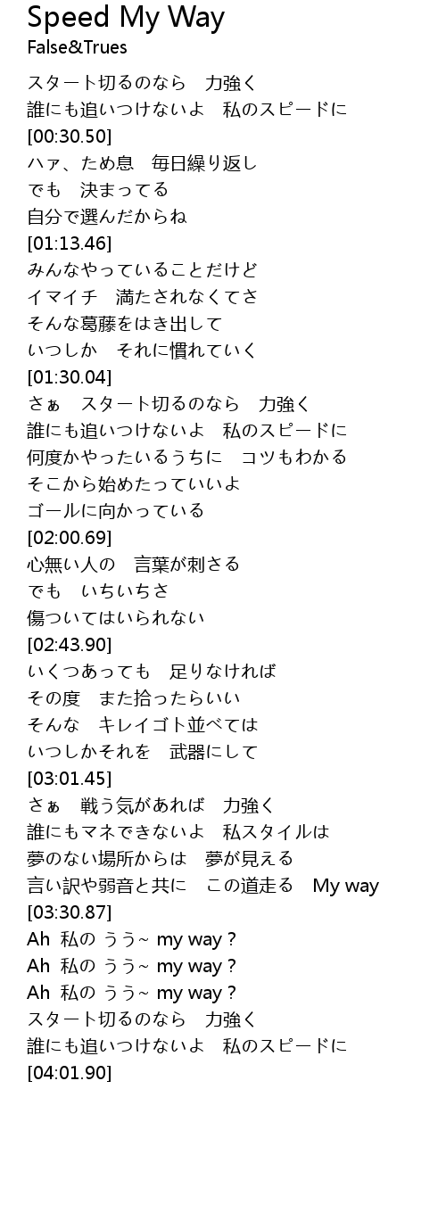 | [03:38.82] | Ah 私の うう~ my way? |