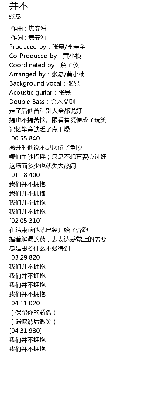 | [00:15.680] | Background vocal:张悬 |