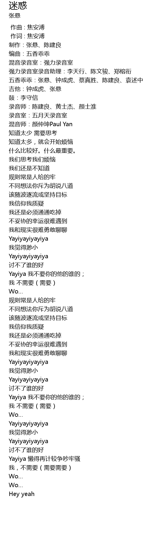 | [00:00.350] | 吉他:钟成虎、张悬 |