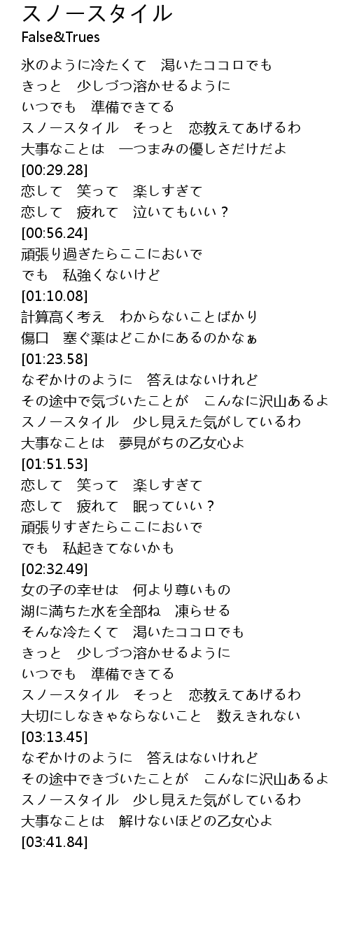 | [02:59.65] | スノースタイル そっと 恋教えてあげるわ |