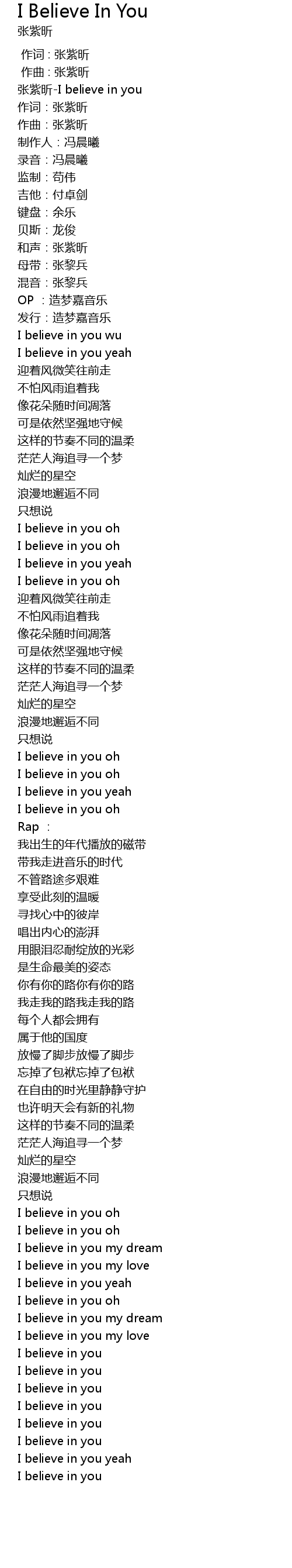 | [00:00.97] | zhāng zǐ xīn I believe in you |