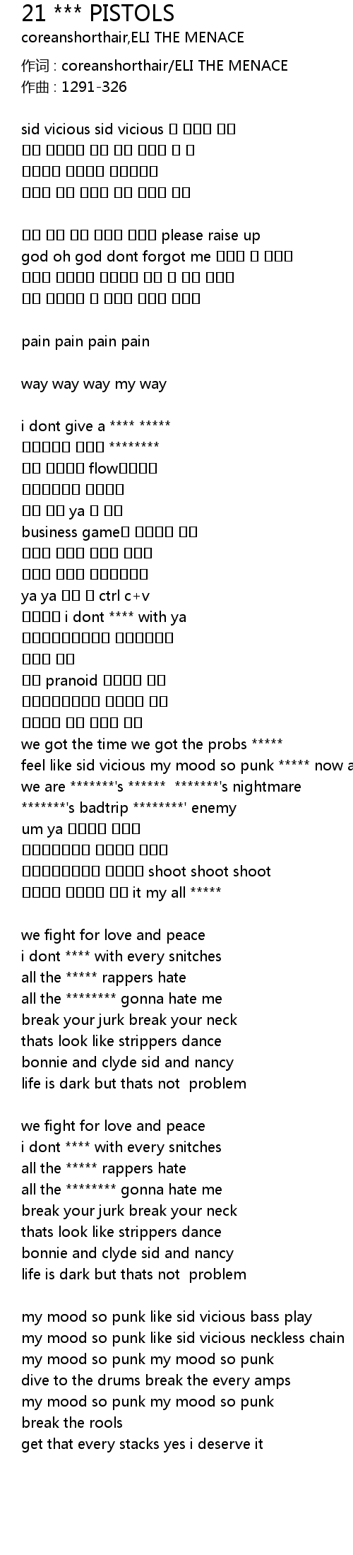 | 歌曲 | 21 *** PISTOLS |