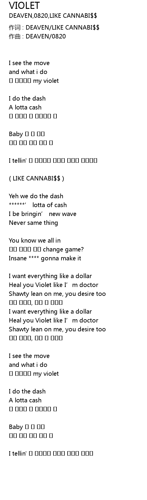| 作词 : DEAVEN/LIKE CANNABI$$ | |
