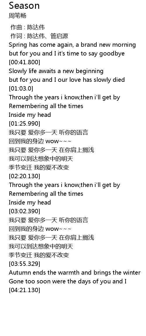 | [03:46.520] | 季节变迁 我的爱不改变 |