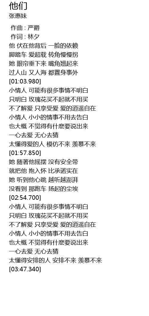 | [03:17.300] | xiao qing ren xiao xiao de qing shi bu yong qu gao bai |