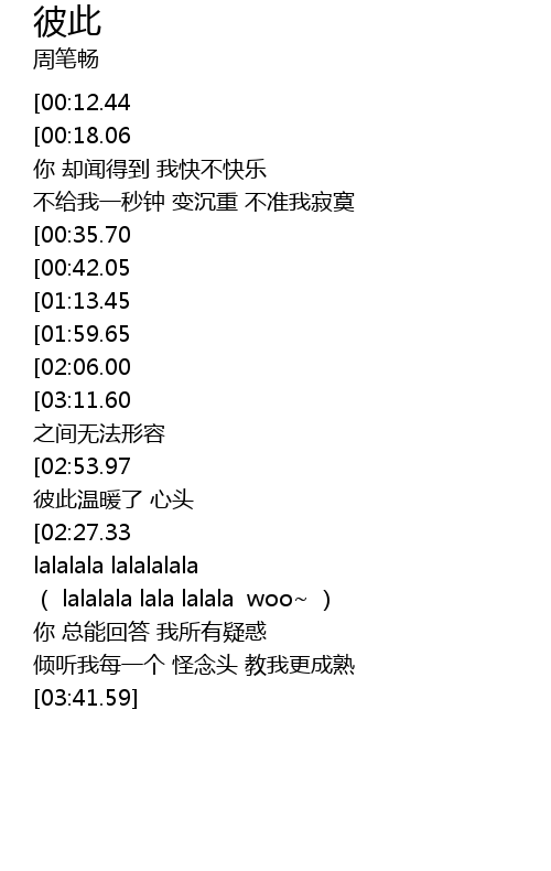 | [03:17.96][02:53.97][02:17.96][01:06.04] | shēng mìng yī shùn jiān bèi qīng qīng qiān dòng bǐ cǐ wēn nuǎn le xīn tóu |