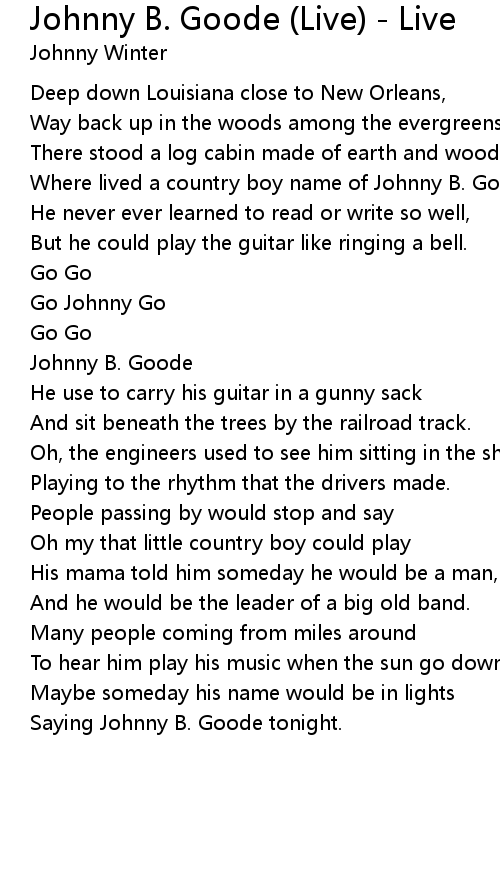 Where lived a country boy name of Johnny B. Goode... |