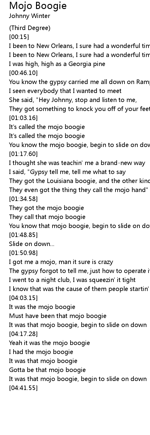 [01:42.48] You know that mojo boogie, begin to slide on down