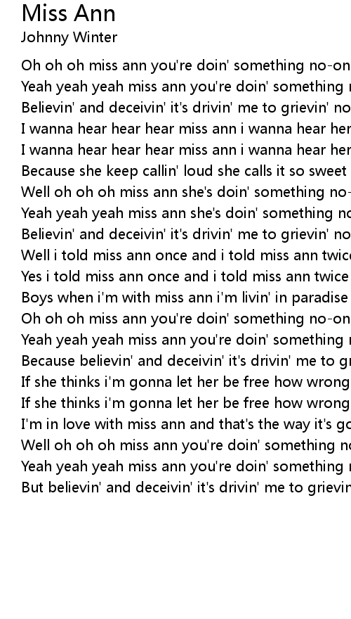 Yeah yeah yeah miss ann she's doin' something no-one can |