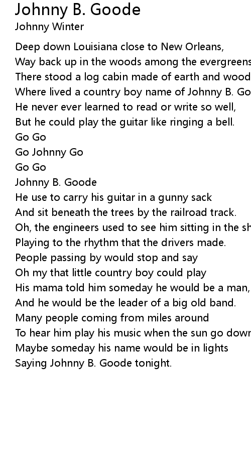 Where lived a country boy name of Johnny B. Goode... |