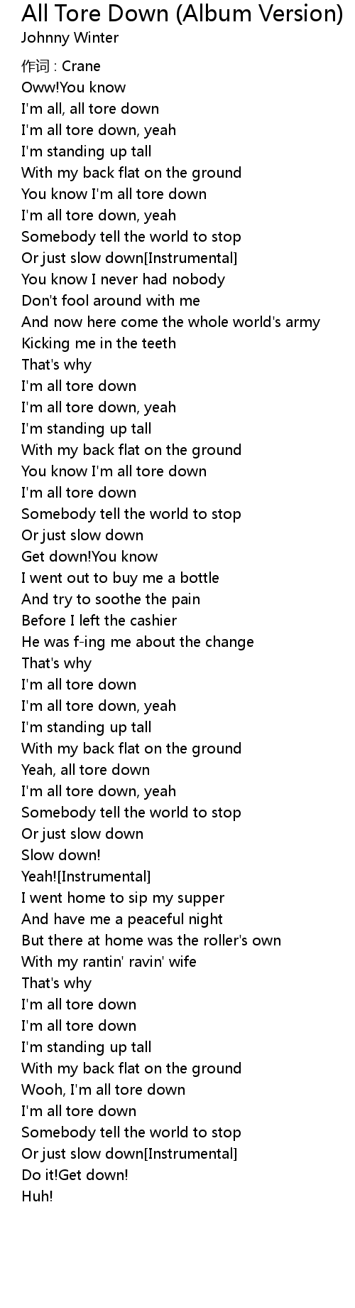 | 歌曲 | All Tore Down (Album Version) |
