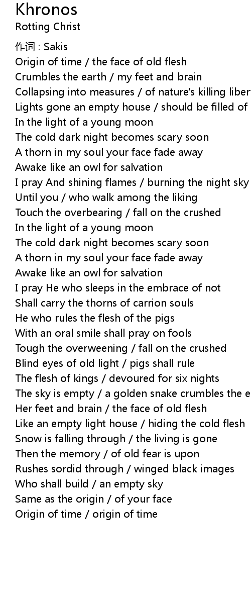 | Origin of time the face of old flesh | |