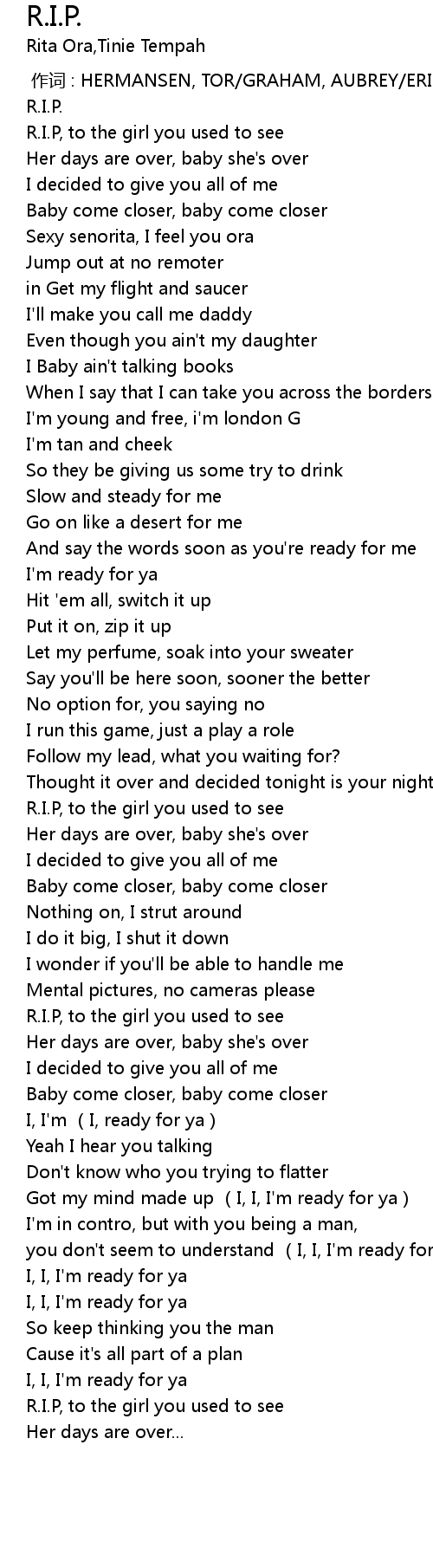 | [03:35.48] | R.I.P, to the girl you used to see |