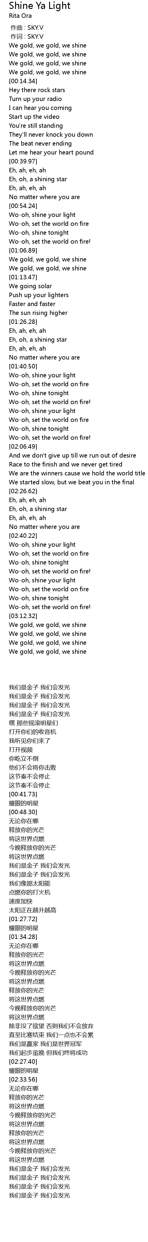 | [01:04.31] | Wo-oh, set the world on fire! |