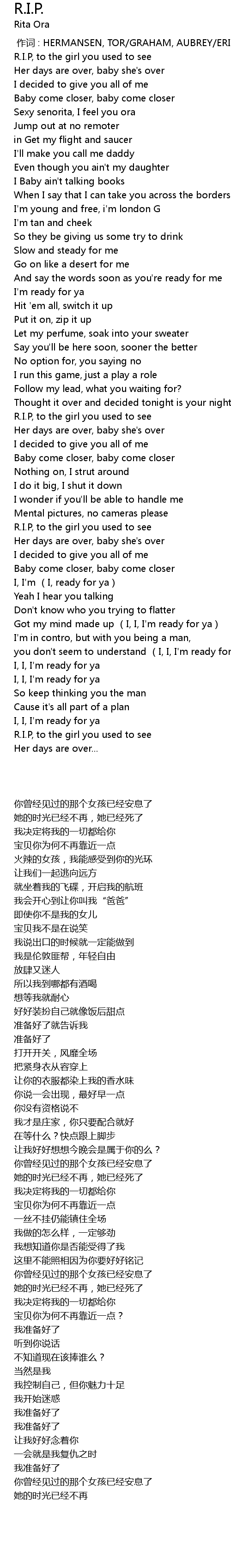 | [01:35.420] | R.I.P, to the girl you used to see |