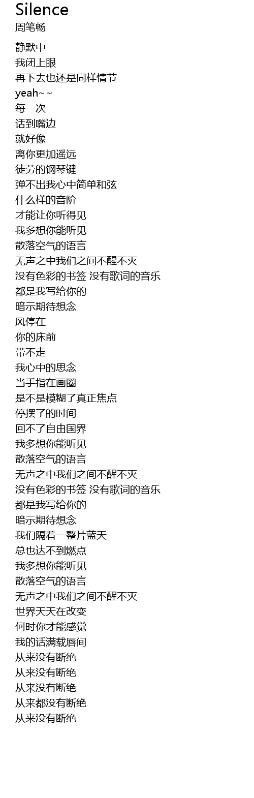 | [02:39.320] | méi yǒu sè cǎi de shū qiān méi yǒu gē cí de yīn yuè |