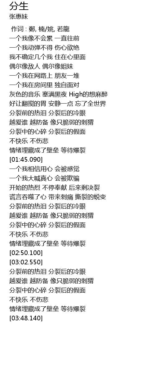 | [02:15.790] | 分裂前的热泪 分裂后的冷眼 |