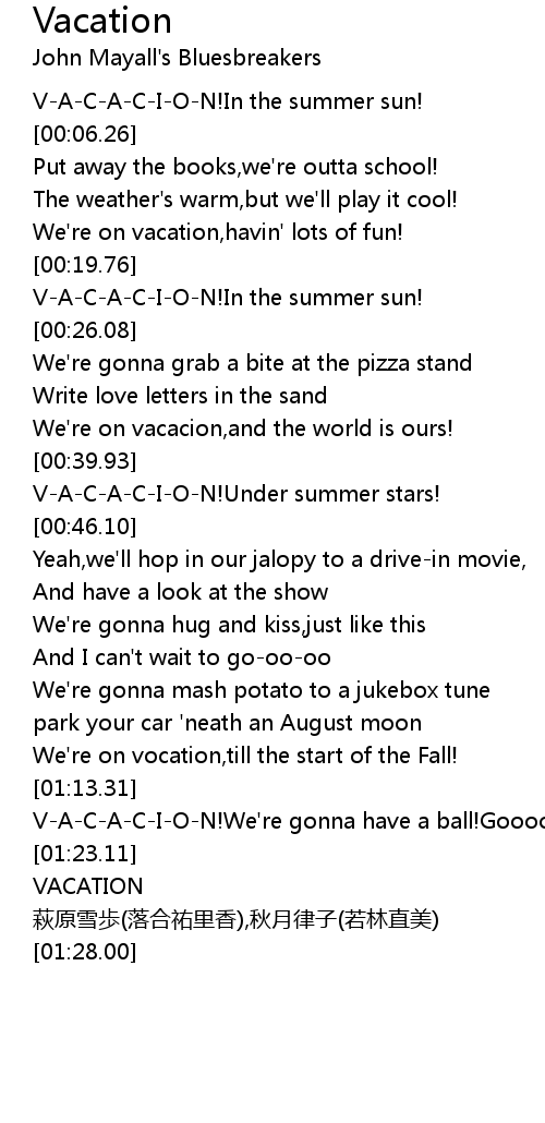 | [00:20.57] | V-A-C-A-C-I-O-N!In the summer sun! |