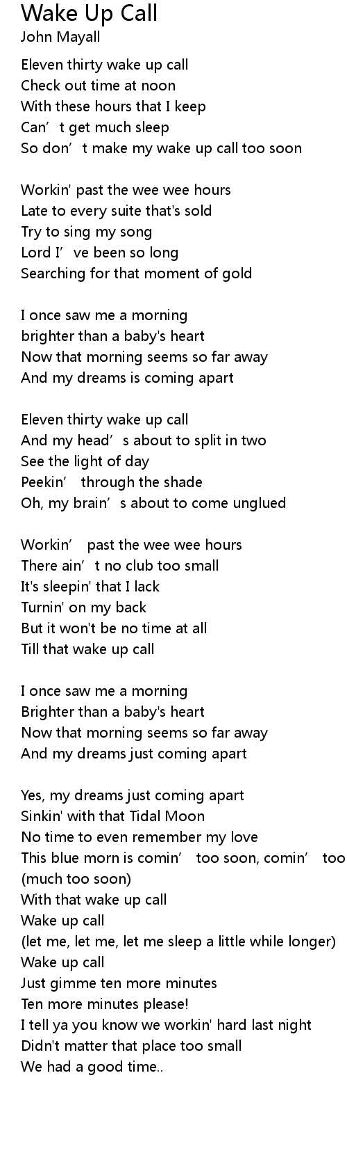 | This blue morn is comin’ too soon, comin’ too soon | |