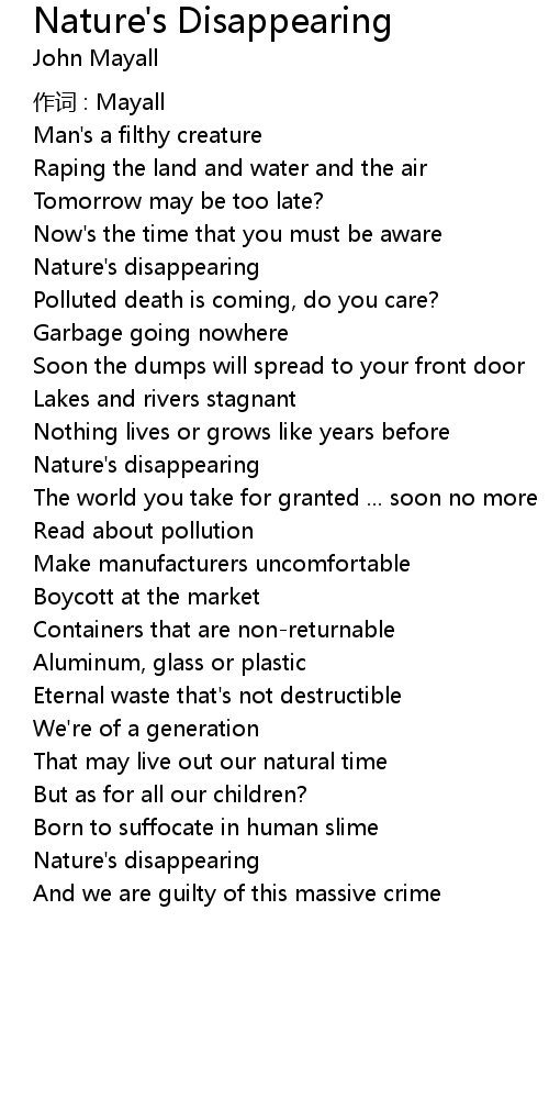 | 歌曲 | Nature's Disappearing |